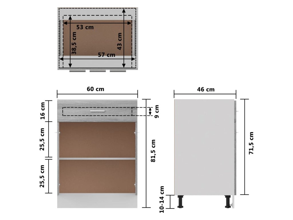 - Další úložný prostor: Kuchyňská skříňka má jednu zásuvku a dvě police a nabízí dostatek prostoru pro uložení misek, talířů, hrnců a jiných kuchyňských spotřebičů.