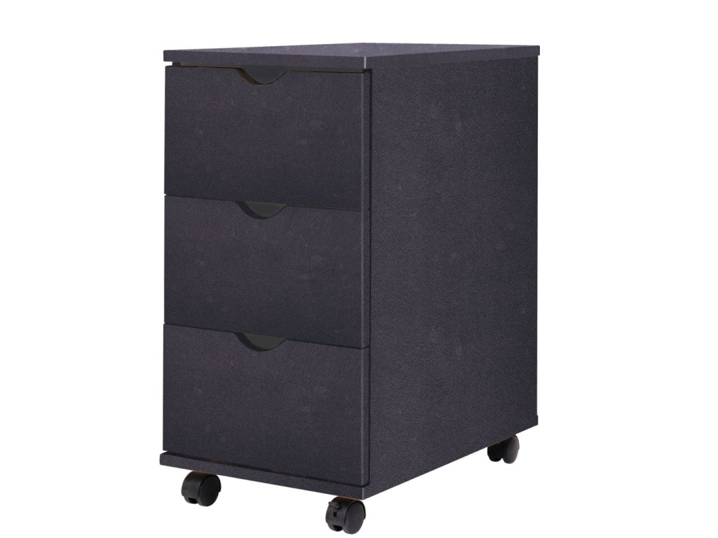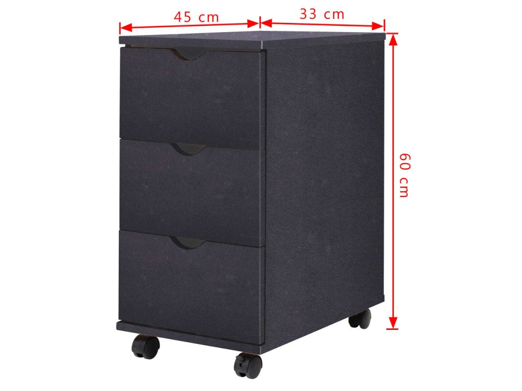 Skříňku tvoří rám z kompozitního dřeva s plastovými kolečky, takže je stabilní a odolná. Tři zásuvky poskytují dostatek úložného prostoru pro úhledné uspořádání různých předmětů, kde je budete mít na dosah ruky. Pomocí koleček lze skříňku snadno a pohodlně přesouvat.