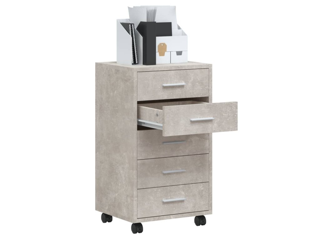 - Dostatek úložného prostoru: Skříňka má 5 zásuvek, které poskytují dostatek úložného prostoru pro dokumenty, sešity, pera, kancelářské sponky, klíče a další kancelářské potřeby.