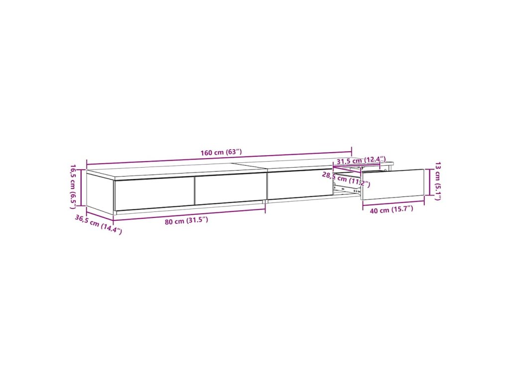 - Celkové rozměry: 160 x 36,5 x 16,5 cm (D x Š x V)