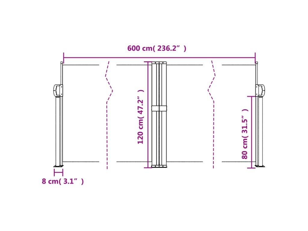 - Praktický design: Díky výsuvné konstrukci se zahradní zástěna po vyjmutí úchytu ze sloupku automaticky sroluje zpět.
