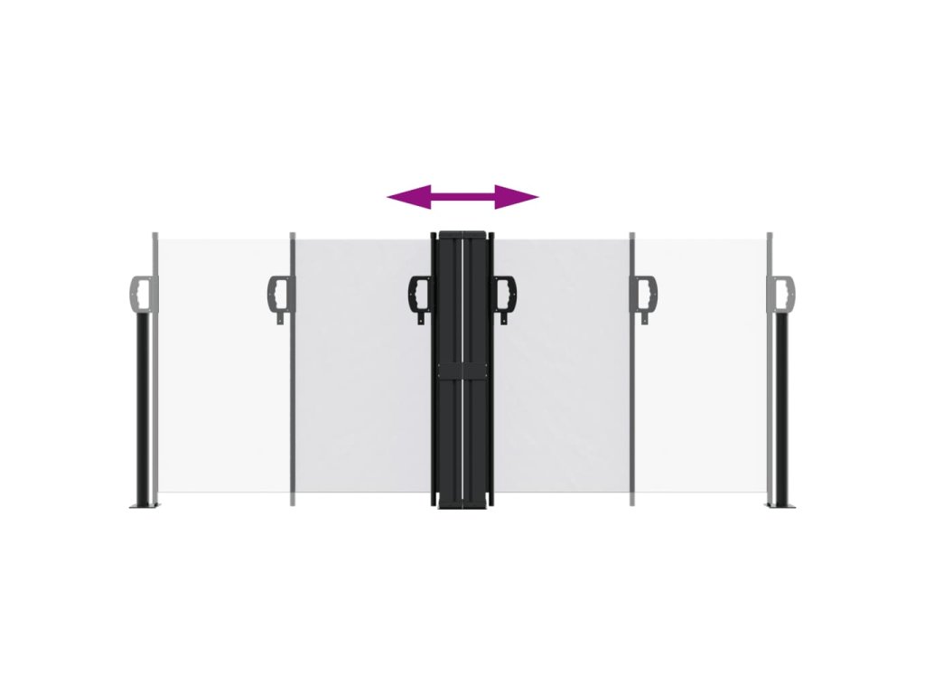 - Praktický design: Díky výsuvné konstrukci se zahradní zástěna po vyjmutí úchytu ze sloupku automaticky sroluje zpět.