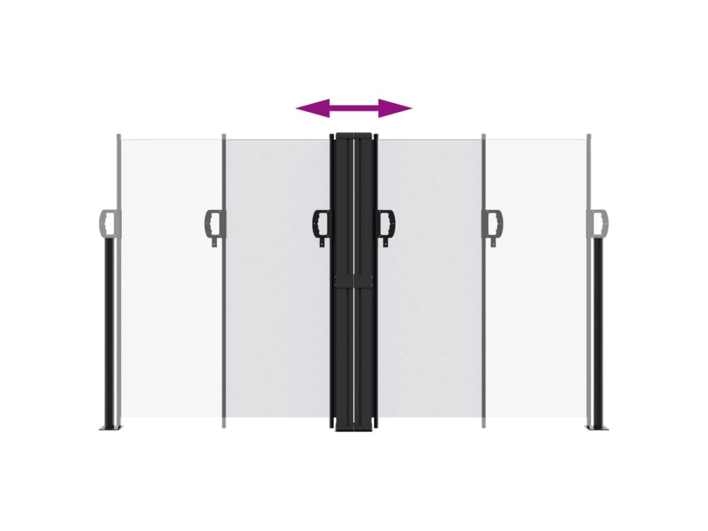 - Praktický design: Díky výsuvné konstrukci se zahradní zástěna po vyjmutí úchytu ze sloupku automaticky sroluje zpět.