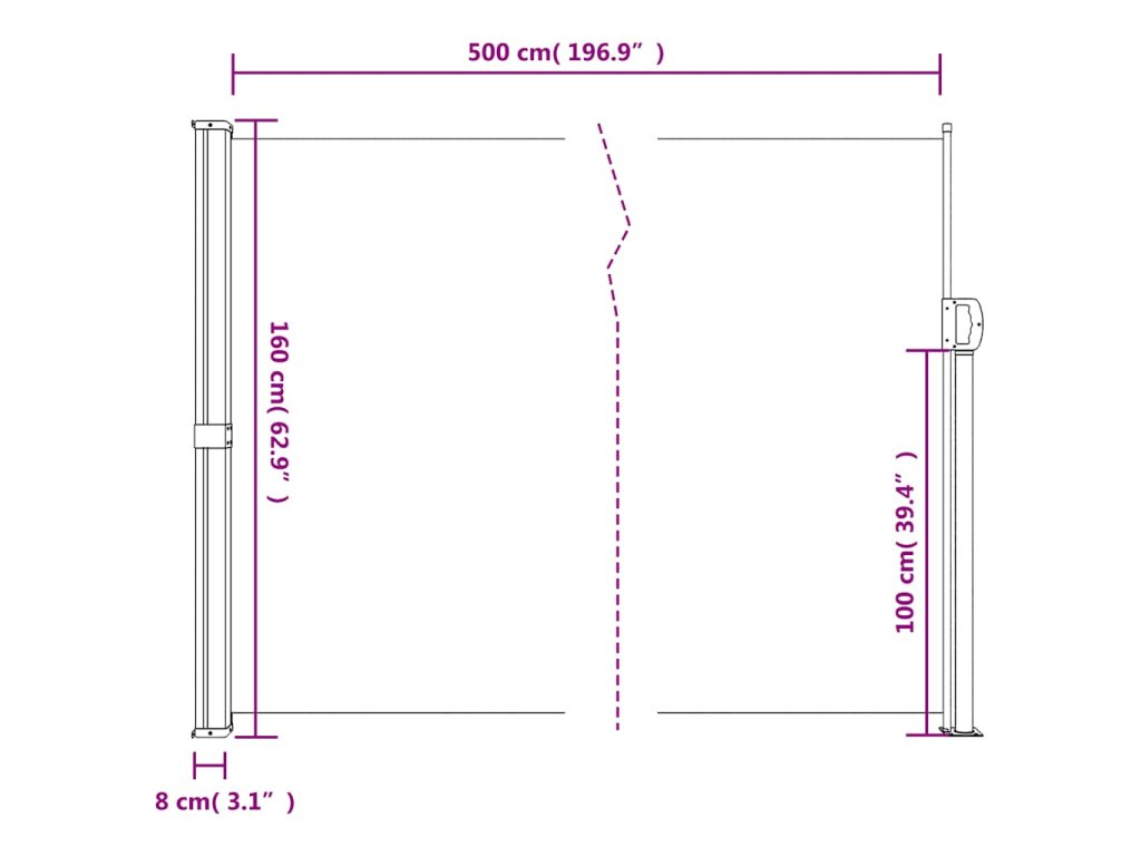 - Široké použití: Tuto univerzální boční markýzu lze použít v různých prostředích, jak venku, jako například na dvoře, terase, zahradě, verandě, balkoně, tak i v interiéru, jako například v kanceláři, ordinaci, ateliéru, šatně či k vytvoření dalšího prostoru podle potřeby.
