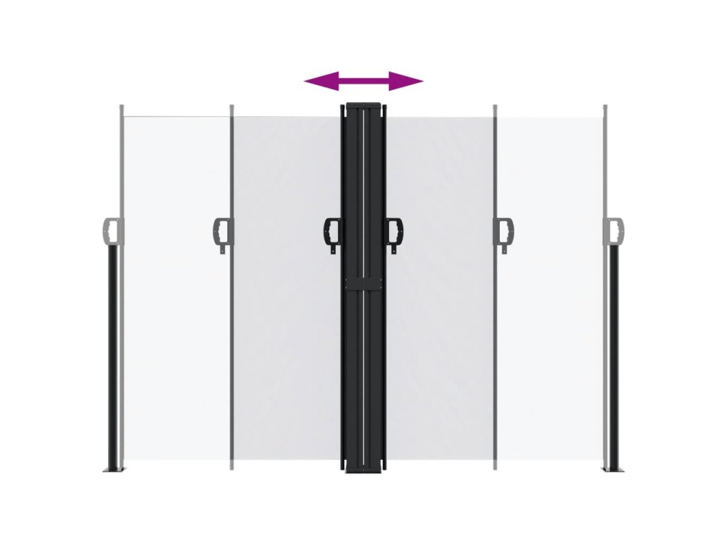 - Praktický design: Díky výsuvné konstrukci se zahradní zástěna po vyjmutí úchytu ze sloupku automaticky sroluje zpět.