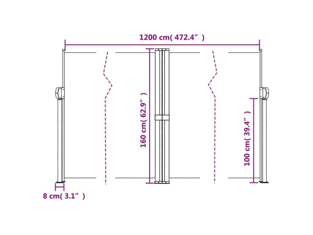 - Praktický design: Díky výsuvné konstrukci se zahradní zástěna po vyjmutí úchytu ze sloupku automaticky sroluje zpět.