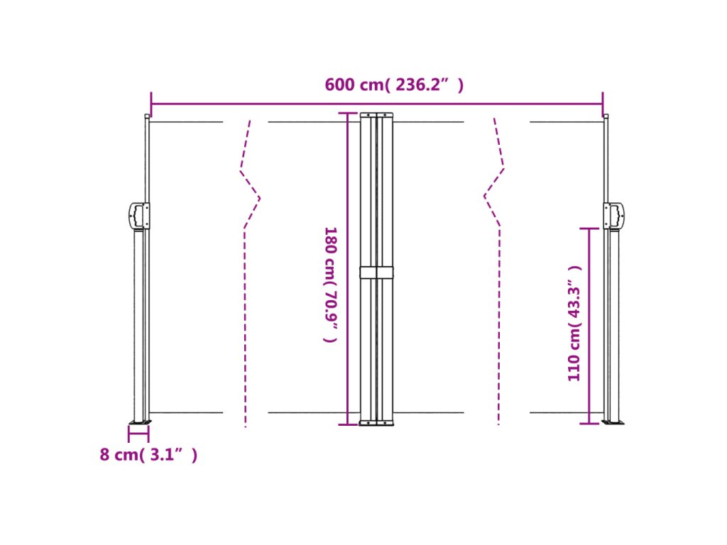 - Praktický design: Díky výsuvné konstrukci se zahradní zástěna po vyjmutí úchytu ze sloupku automaticky sroluje zpět.