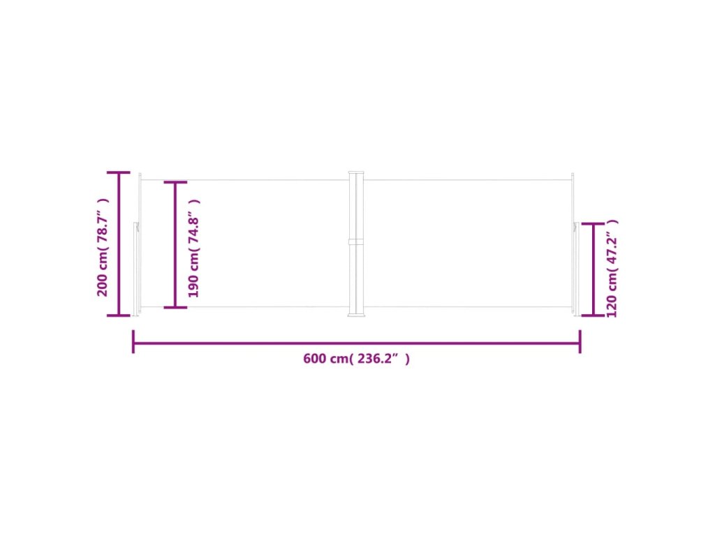 Jednoduchý a přitom stylový design této zástěny se bude krásně vyjímat na každé zahradě, terase, balkonu apod. Zatahovací boční markýza je vybavená funkcí automatického zatažení a můžete ji roztáhnout do šířky až 600 cm. Je vyrobená z polyesteru potaženého PU vrstvou, který chrání proti UV záření, netrhá se a je voděodolný.