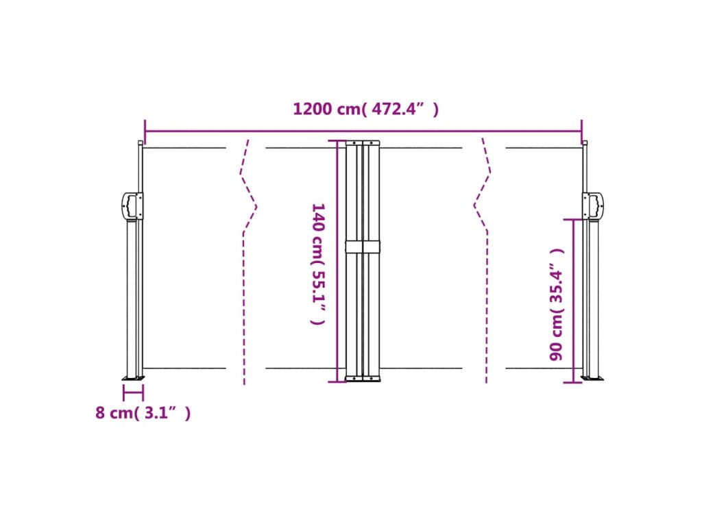 - Praktický design: Díky výsuvné konstrukci se zahradní zástěna po vyjmutí úchytu ze sloupku automaticky sroluje zpět.