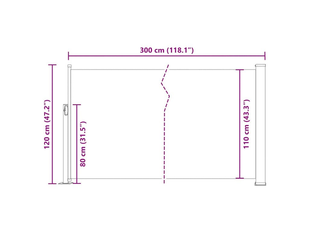 Jednoduchý a přitom stylový design této zástěny se bude krásně vyjímat na každé zahradě, terase, balkonu apod. Zatahovací boční markýza je vybavena funkcí automatického stažení a můžete ji roztáhnout do šířky až 300 cm. Je vyrobena z polyesteru, který chrání proti UV záření, je odolný vůči roztržení a voděodolný.