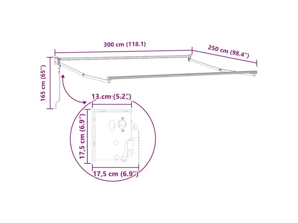 - Materiál s dlouhou životností: Rám markýzy je vyroben z práškově lakovaného hliníku, který je robustní a hodně toho vydrží. Tkanina s PU povrchovou úpravou je odolná proti UV záření. Ochrání vaši rodinu i hosty před UV zářením a oslňujícím slunečním světlem.