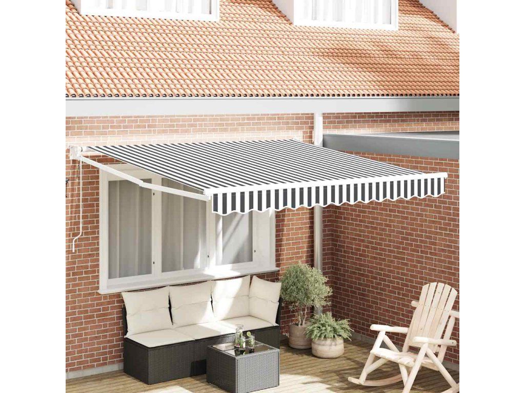 Posaďte se pod tuto skvělou zatahovací markýzu a vychutnejte si na zahradě chladivý nápoj a odpolední svačinku nebo si jen tak užijte posezení s přáteli!
