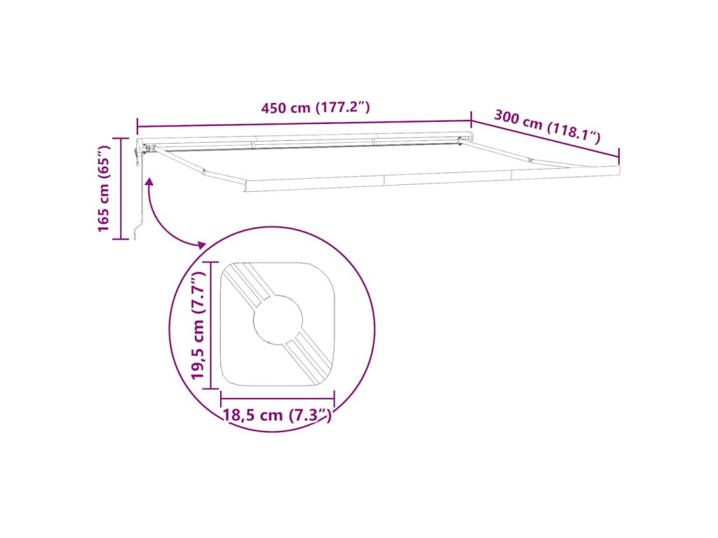 - Materiál s dlouhou životností: Rám markýzy je vyroben z práškově lakovaného hliníku, který je robustní a hodně toho vydrží. Tkanina s PU povrchovou úpravou je odolná proti UV záření. Ochrání vaši rodinu i hosty před UV zářením a oslňujícím slunečním světlem.