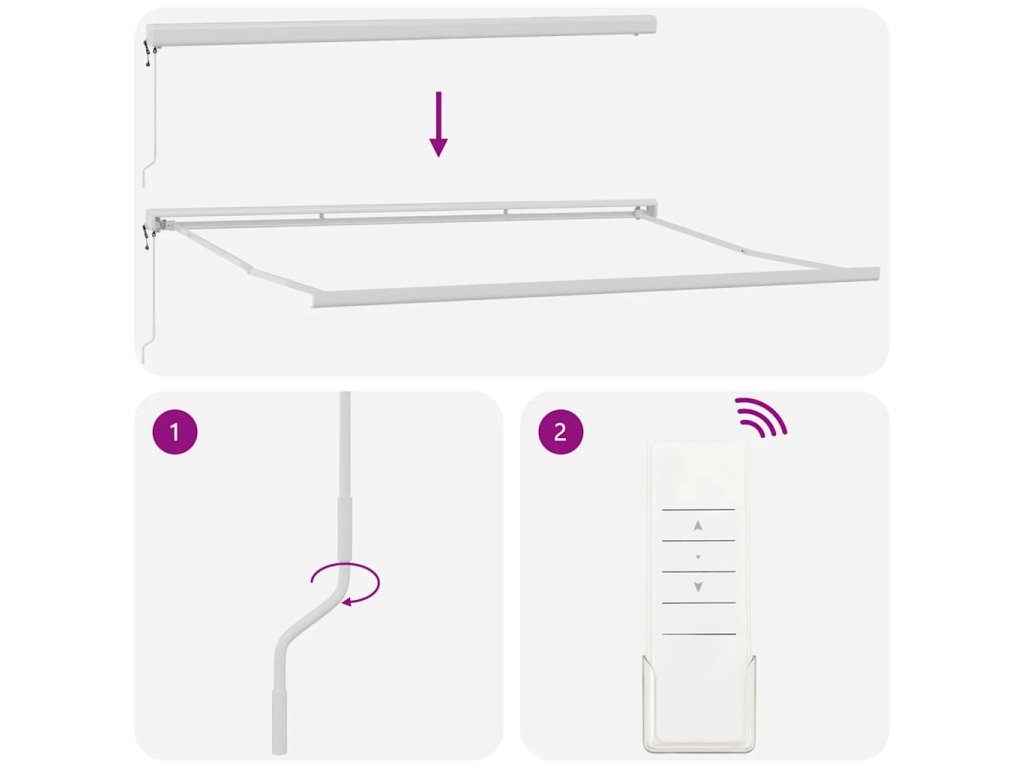 - Nástěnné provedení: Markýzu lze snadno připevnit na stěnu pomocí přiložených nástěnných držáků a nezabírá tak žádné místo na podlaze.