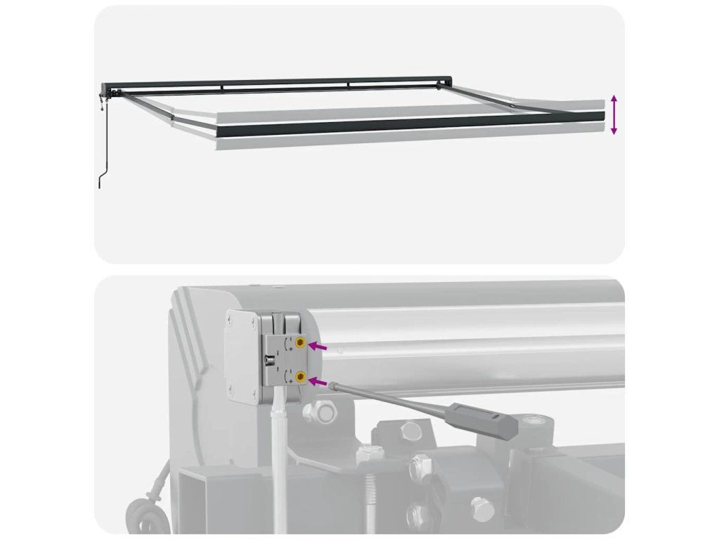 - Materiál s dlouhou životností: Rám markýzy je vyroben z práškově lakovaného hliníku, který je robustní a hodně toho vydrží. Tkanina s PU povrchovou úpravou je odolná proti UV záření. Ochrání vaši rodinu i hosty před UV zářením a oslňujícím slunečním světlem.