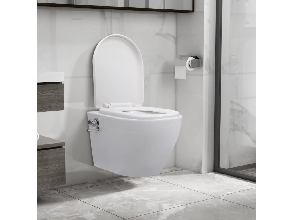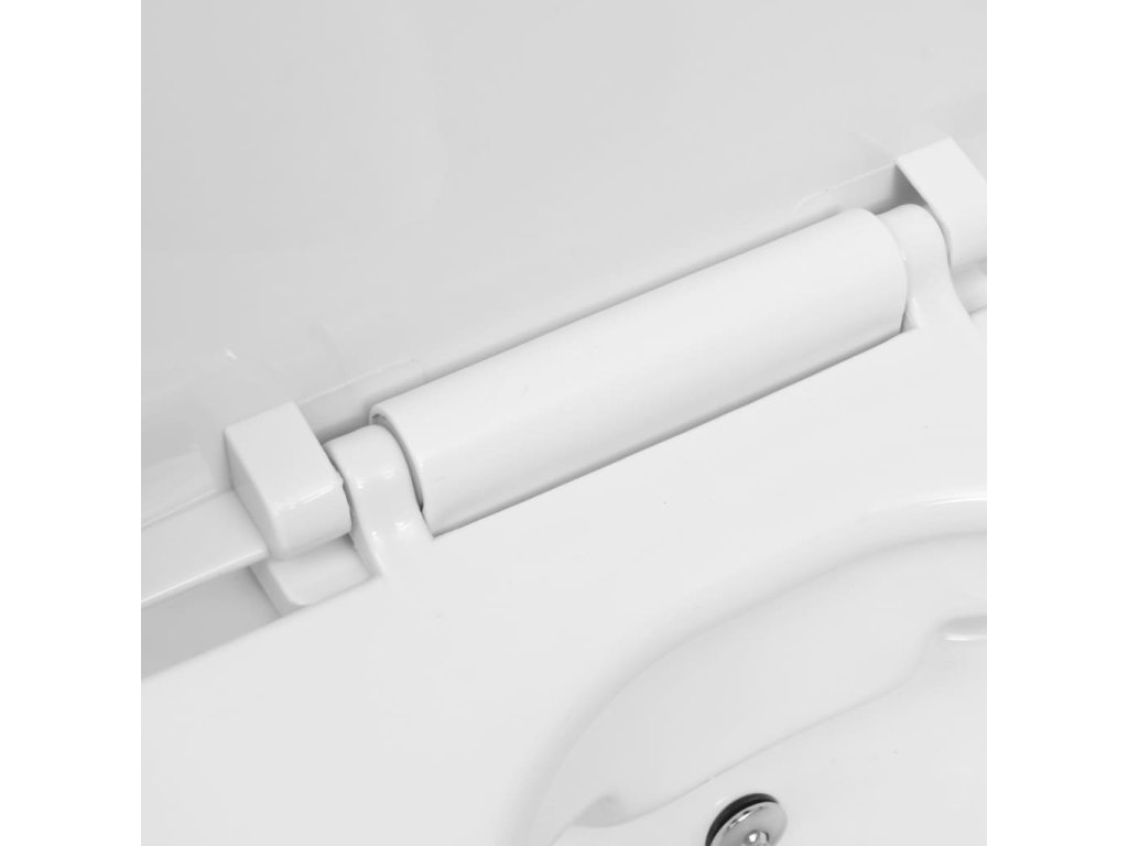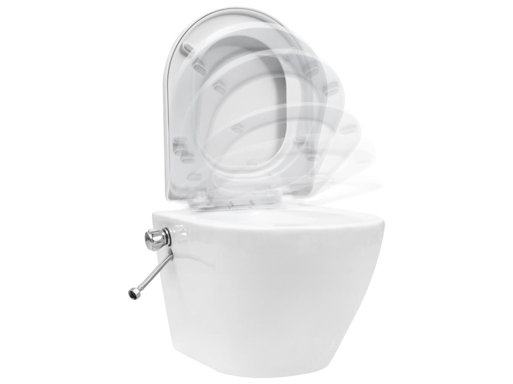 Záchod s bezokrajovým splachováním má neobyčejně odolný a nízkoúdržbový keramický povrch, který usnadňuje čištění a zaručuje dlouhé roky spokojeného používání. Výborně také odpuzuje nečistoty, a tak se na něm příliš neusazuje vodní kámen ani jiné kontaminanty. Mechanismus pomalého sklápění brání hlučnému padání víka. Toaleta rovněž disponuje bidetovou sprškou pro opláchnutí intimních partií. Veškeré montážní příslušenství je zcela skryté, takže výsledný vzhled je elegantní a hladký.
