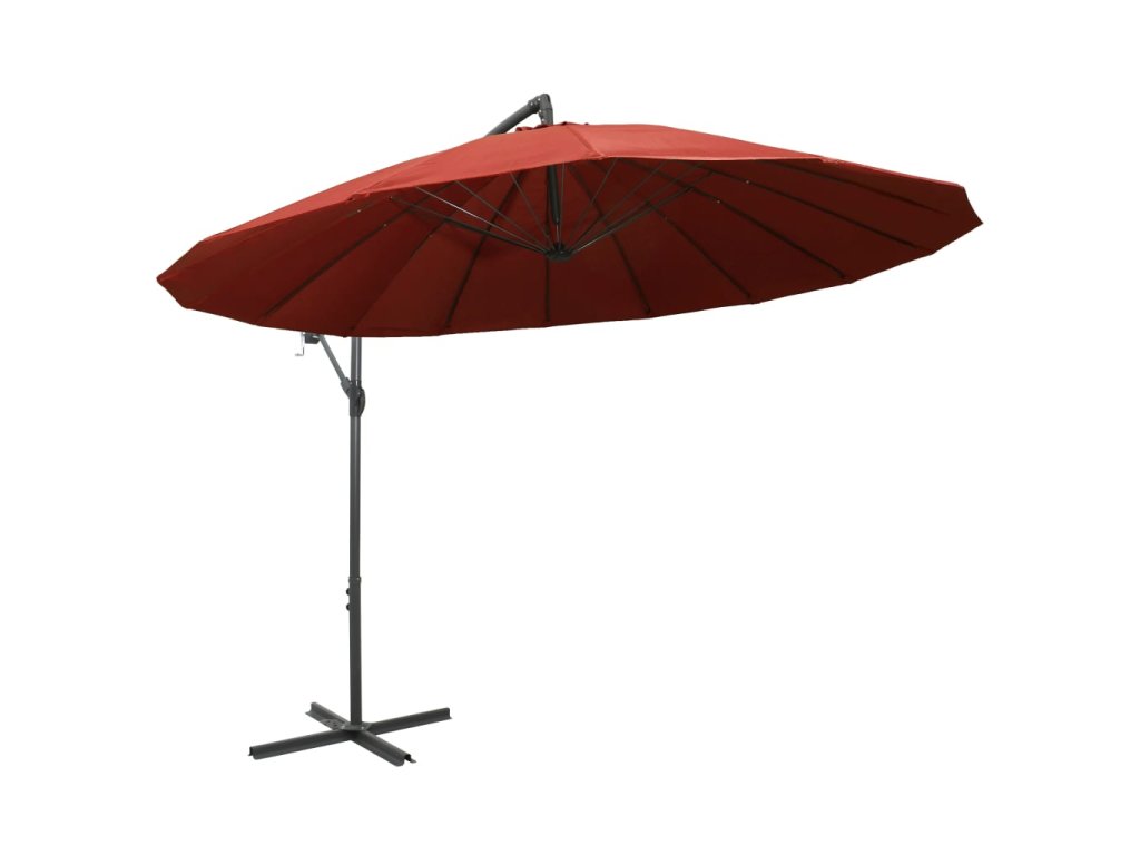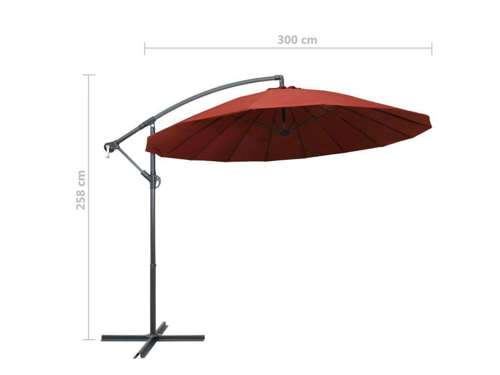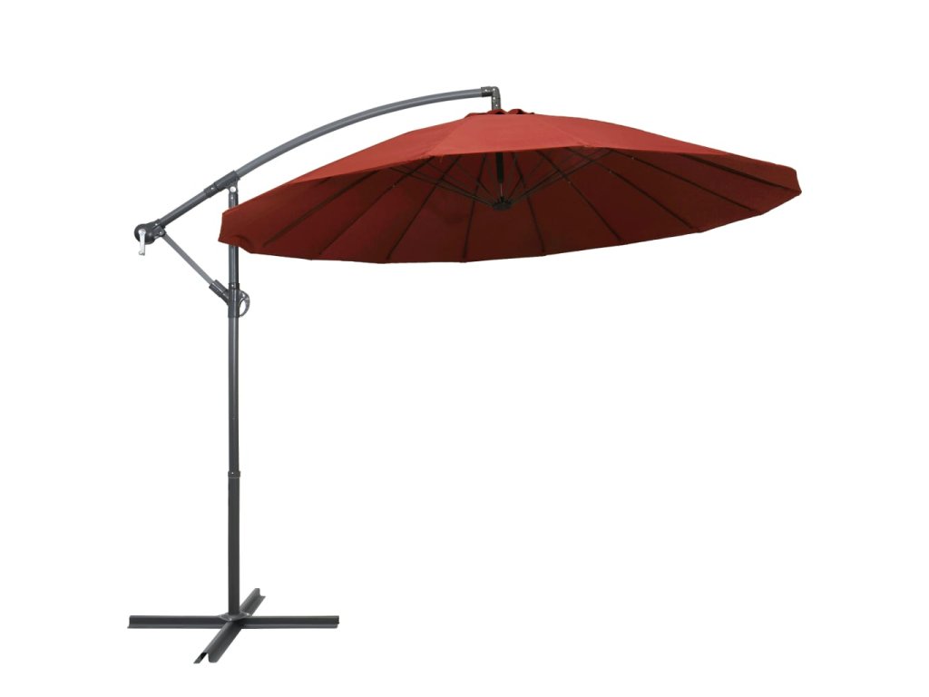 Stříška slunečníku je vyrobená z polyesterové tkaniny, která nebledne a nepropouští škodlivé UV záření, takže vám poskytne optimální ochranu před sluncem. Navíc se snadno čistí. Pevná křížová základna zvyšuje stabilitu slunečníku. Jeho exkluzivní konstrukce vám nabízí mimořádně velkou plochu k zablokování slunce. Silná hliníková tyč s 16 odolnými žebry zajišťuje, že se slunečník nehýbe a hodně toho vydrží. Zahradní slunečník disponuje klikovým mechanismem, což znamená, že se snadno otevírá i zavírá. Sestavení výrobku je jednoduché.