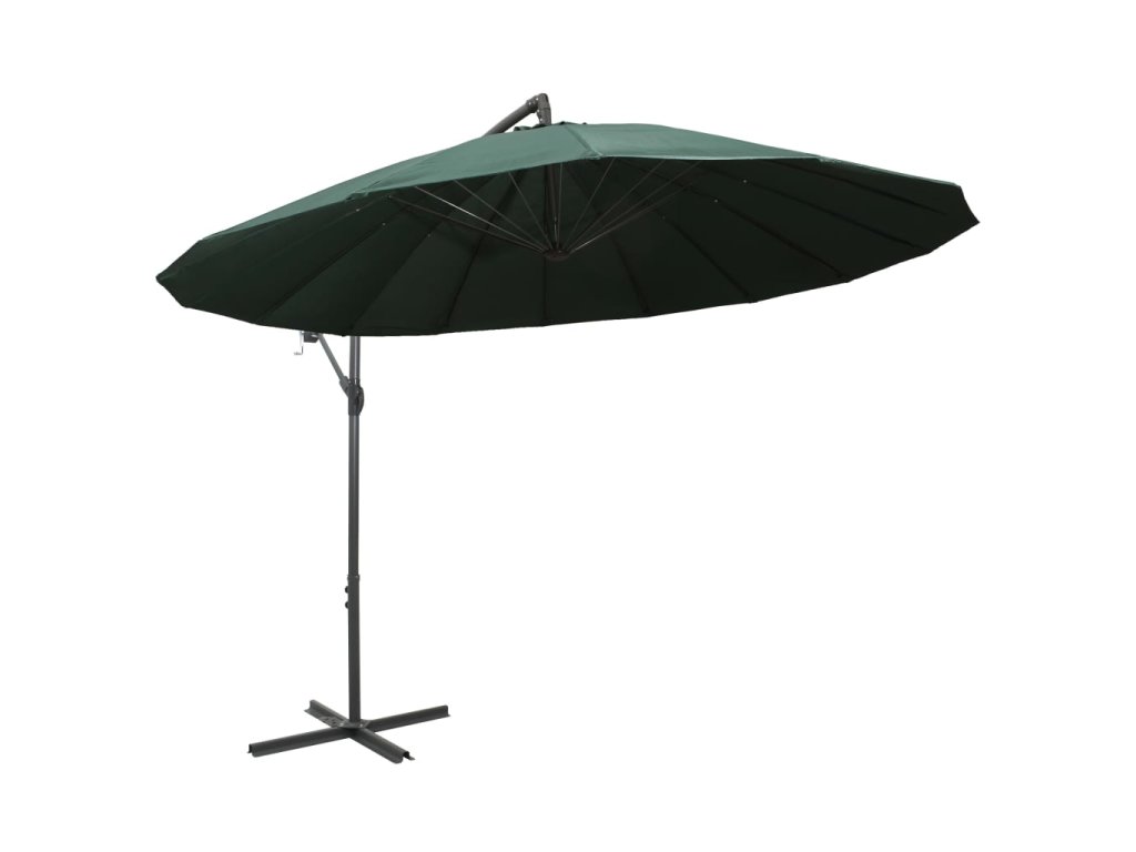 Stříška slunečníku je vyrobená z polyesterové tkaniny, která nebledne a nepropouští škodlivé UV záření, takže vám poskytne optimální ochranu před sluncem. Navíc se snadno čistí. Pevná křížová základna zvyšuje stabilitu slunečníku. Jeho exkluzivní konstrukce vám nabízí mimořádně velkou plochu k zablokování slunce. Silná hliníková tyč s 16 odolnými žebry zajišťuje, že se slunečník nehýbe a hodně toho vydrží. Zahradní slunečník disponuje klikovým mechanismem, což znamená, že se snadno otevírá i zavírá. Sestavení výrobku je jednoduché.