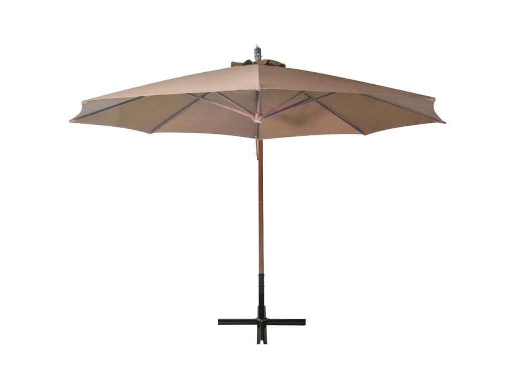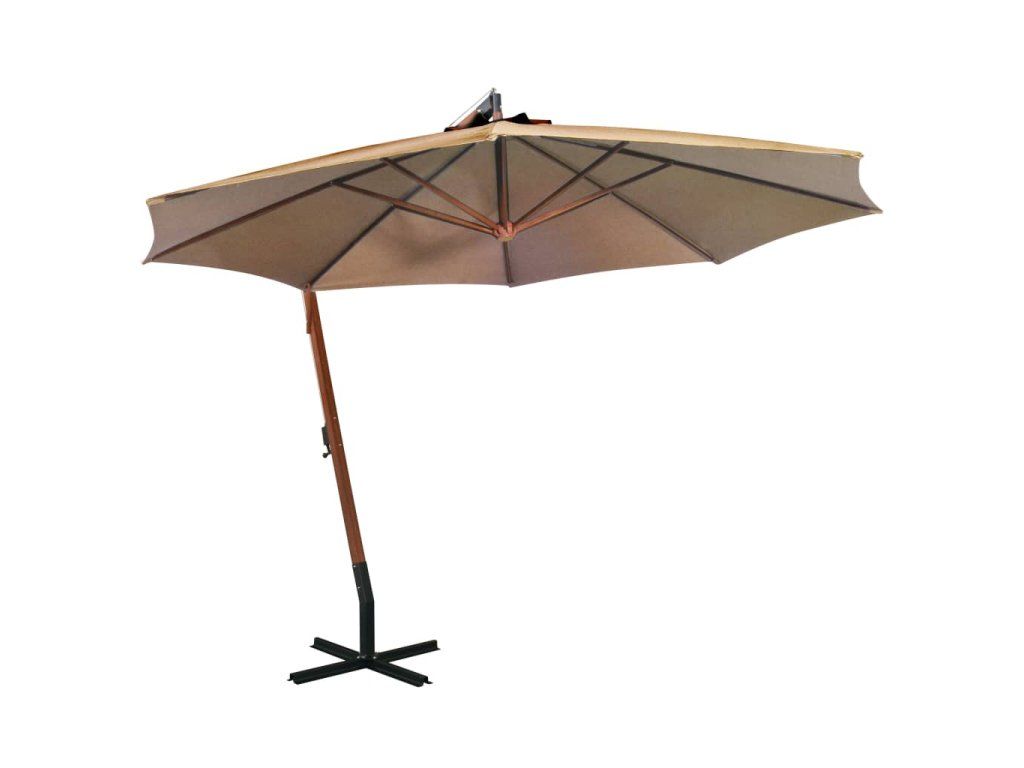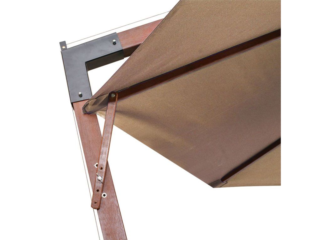 Střecha slunečníku je vyrobená z polyesterové tkaniny, která neztrácí barvu a je odolná vůči UV záření, takže zajišťuje optimální ochranu před sluncem. Slunečník má pevnou tyč z masivního jedlového dřeva, 8 odolných bambusových žeber a základnu ve tvaru kříže, je tudíž velmi stabilní. Stříška slunečníku volně visí z tyče, tyč proto nepřekáží v prostoru pod slunečníkem.