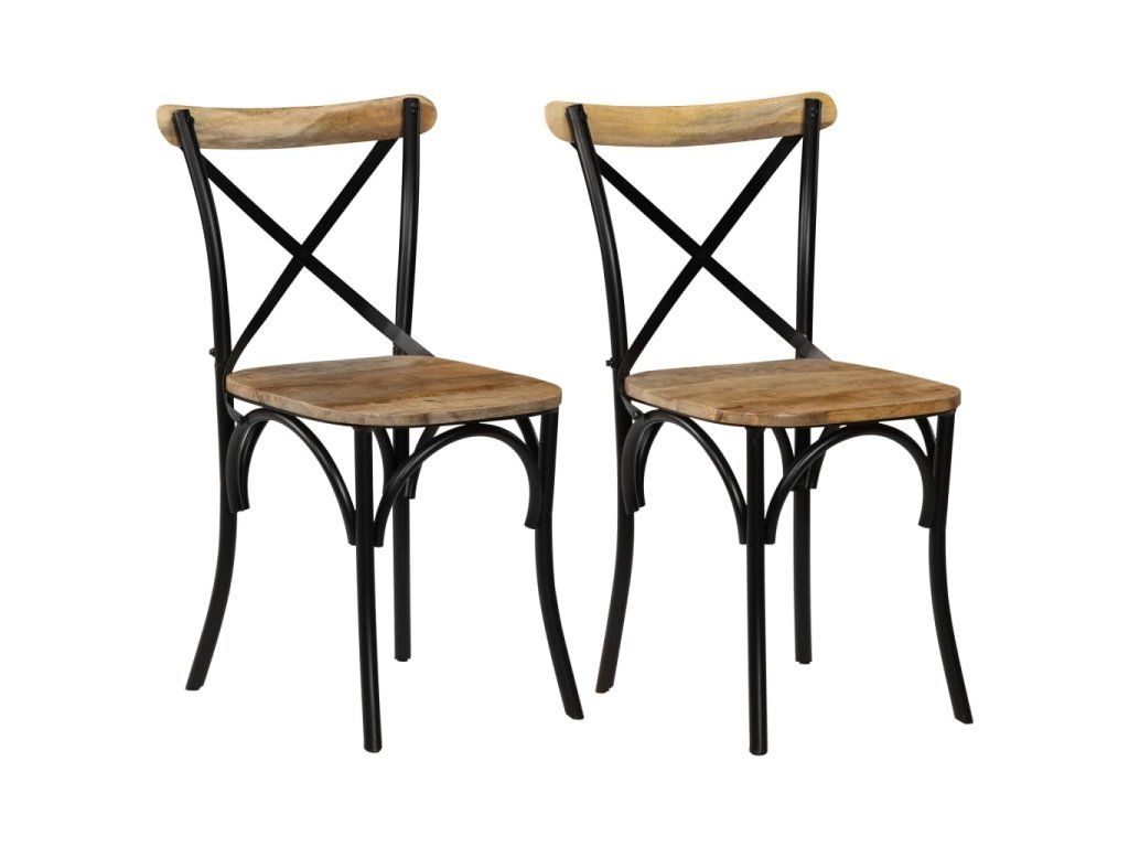 Tato sada 2 starožitně vyhlížejících jídelních židlí je vyrobená z mangovníkového dřeva a strhne na sebe ve vaší jídelně veškerou pozornost. Ocelové rámy zajišťují, že jsou židle nesmírně odolné a stabilní.