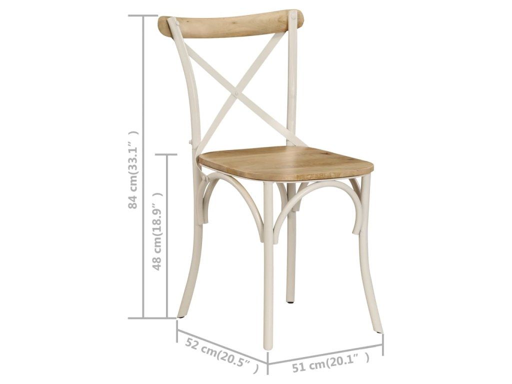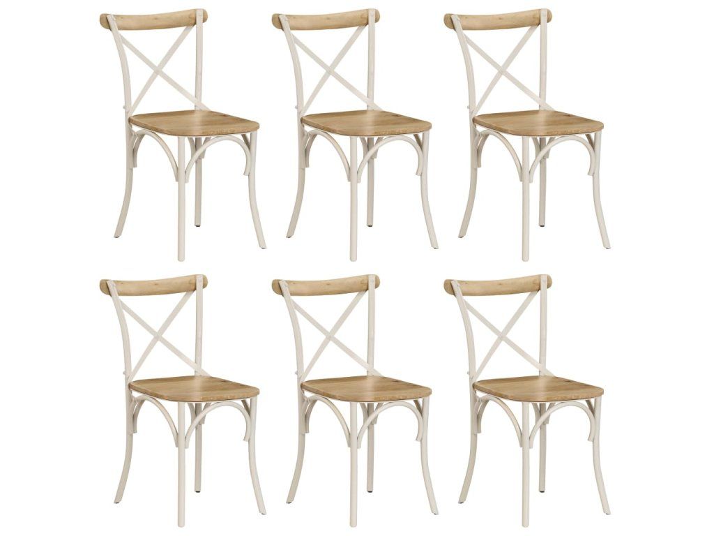 Tato sada 6 starožitně vyhlížejících jídelních židlí je vyrobená z mangovníkového dřeva a strhne na sebe ve vaší jídelně veškerou pozornost. Ocelové rámy zajišťují, že jsou židle nesmírně odolné a stabilní.
