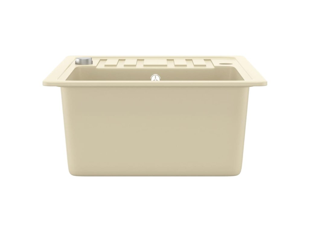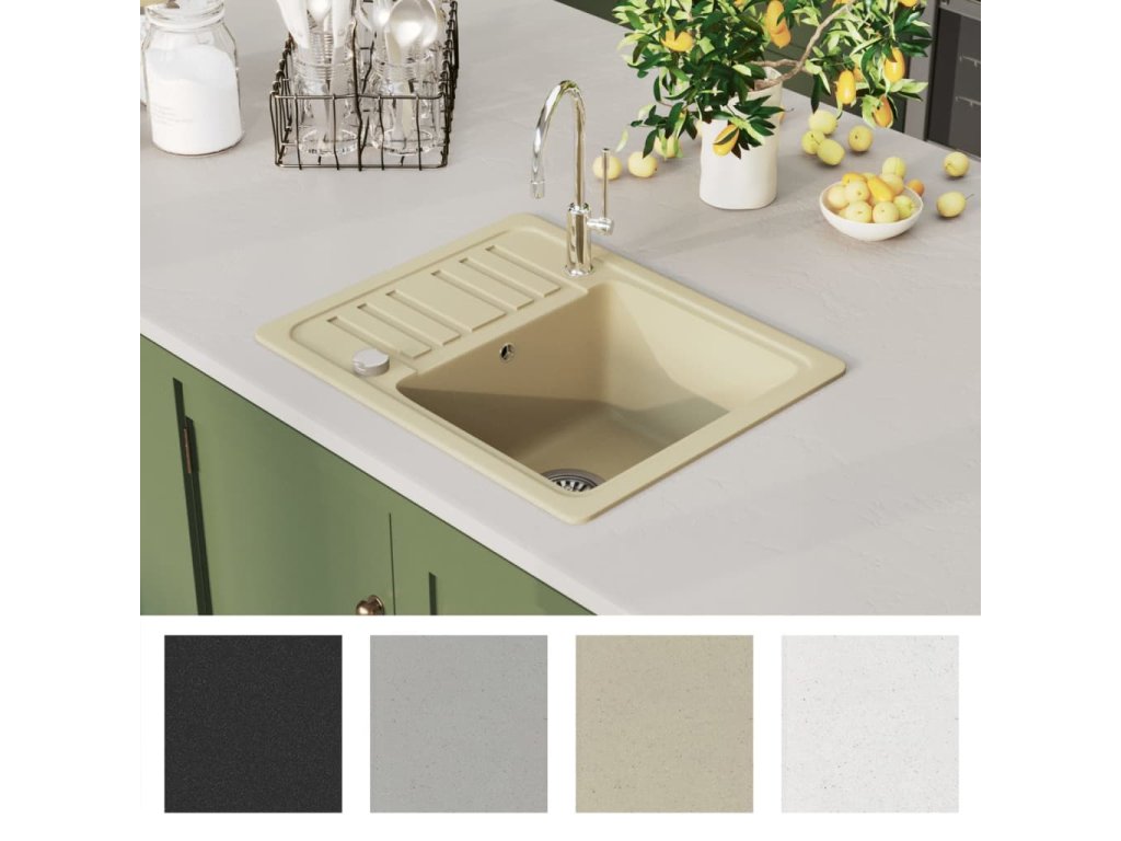 Dřez je zhotoven z vysoce kvalitní žuly, výborně tedy odolává teplu, poškrábání a nárazům a snadno se čistí. Navíc je oboustranný, takže ho můžete namontovat jak na pravou, tak na levou stranu. Součástí balení je i sítko na odpad pro jednodušší odstraňování nečistot.