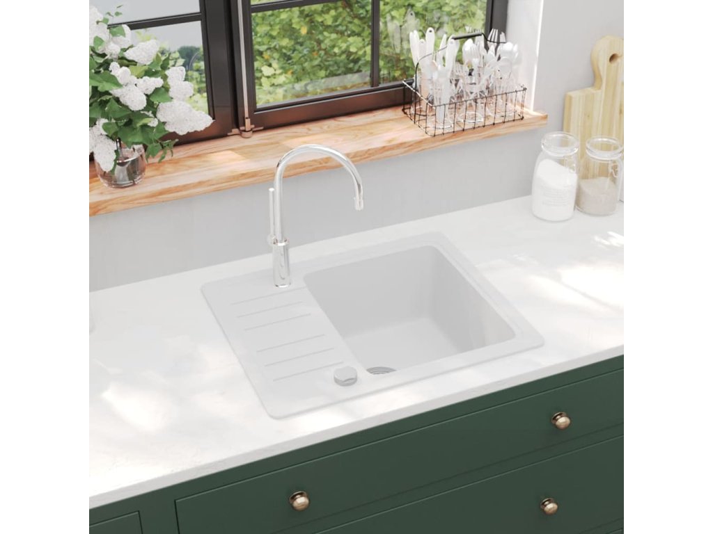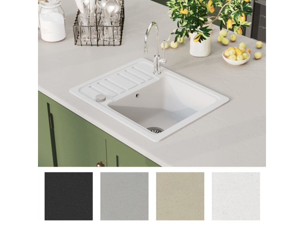 Dřez je zhotoven z vysoce kvalitní žuly, výborně tedy odolává teplu, poškrábání a nárazům a snadno se čistí. Navíc je oboustranný, takže ho můžete namontovat jak na pravou, tak na levou stranu. Součástí balení je i sítko na odpad pro jednodušší odstraňování nečistot.