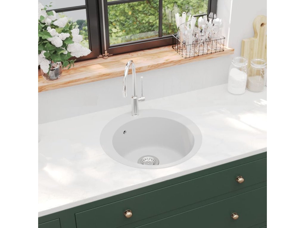 Dřez je zhotoven z vysoce kvalitní žuly, výborně tedy odolává teplu, poškrábání a nárazům a snadno se čistí. Součástí balení je i sítko na odpad pro jednodušší odstraňování nečistot.