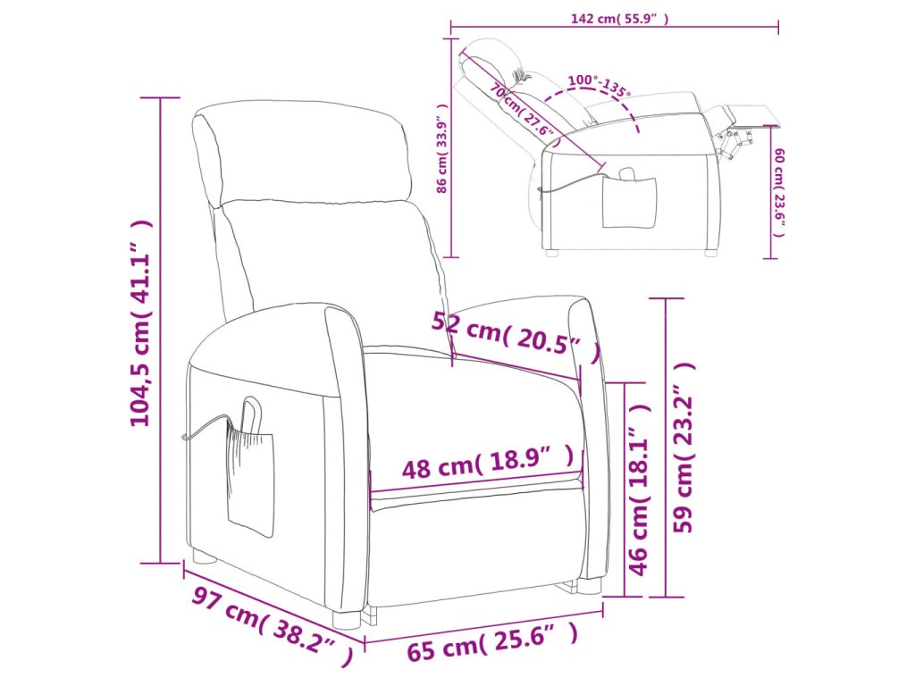 - Funkce sklápění: Toto polohovací křeslo pro seniory je vybaveno elektromotorem pro jeho zvedání. Vzhledem k funkci zvedání, která tlačí celé křeslo nahoru, můžete snadno vstát, aniž byste zatěžovali záda a kolena pomocí 2tlačítkového ručního ovládání.