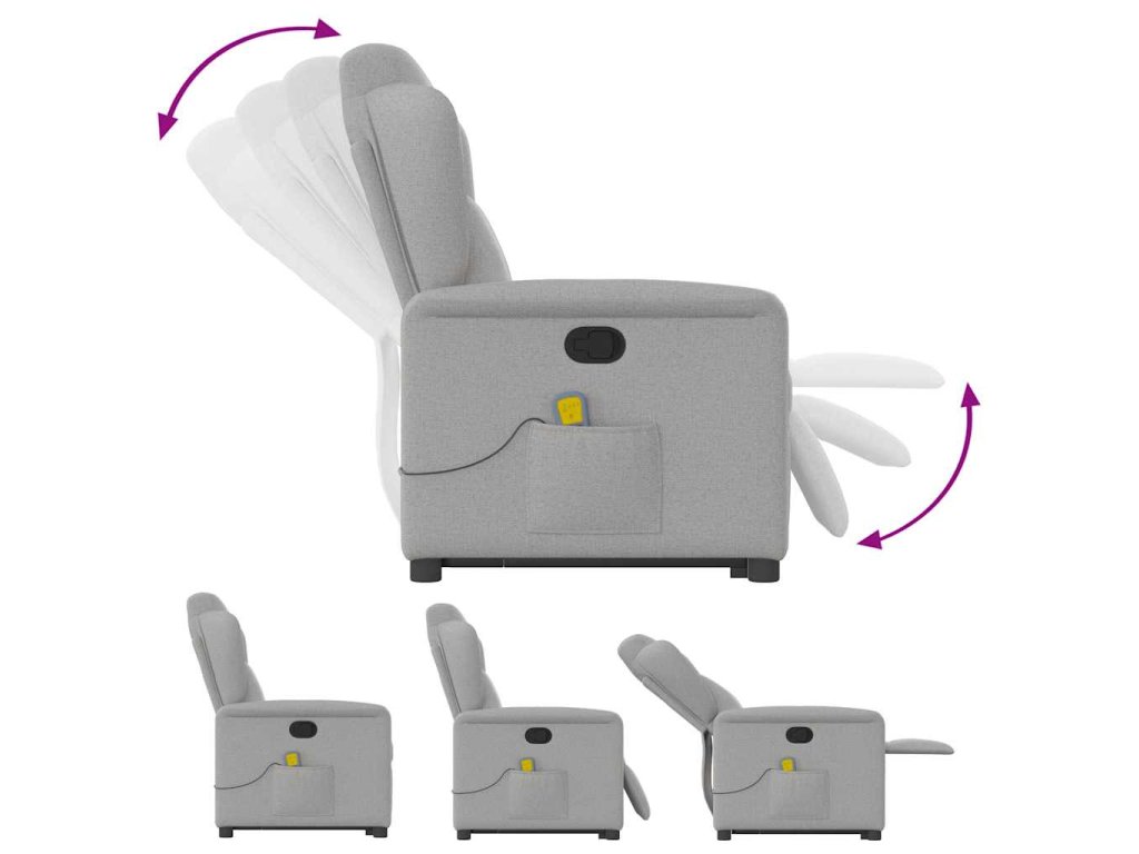 - Funkce sklápění: Toto polohovací křeslo pro seniory je vybaveno elektromotorem pro jeho zvedání. Vzhledem k funkci zvedání, která tlačí celé křeslo nahoru, můžete snadno vstát, aniž byste zatěžovali záda a kolena.