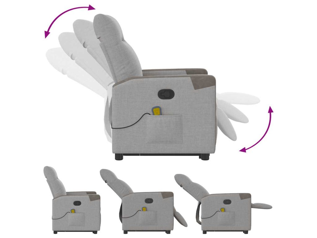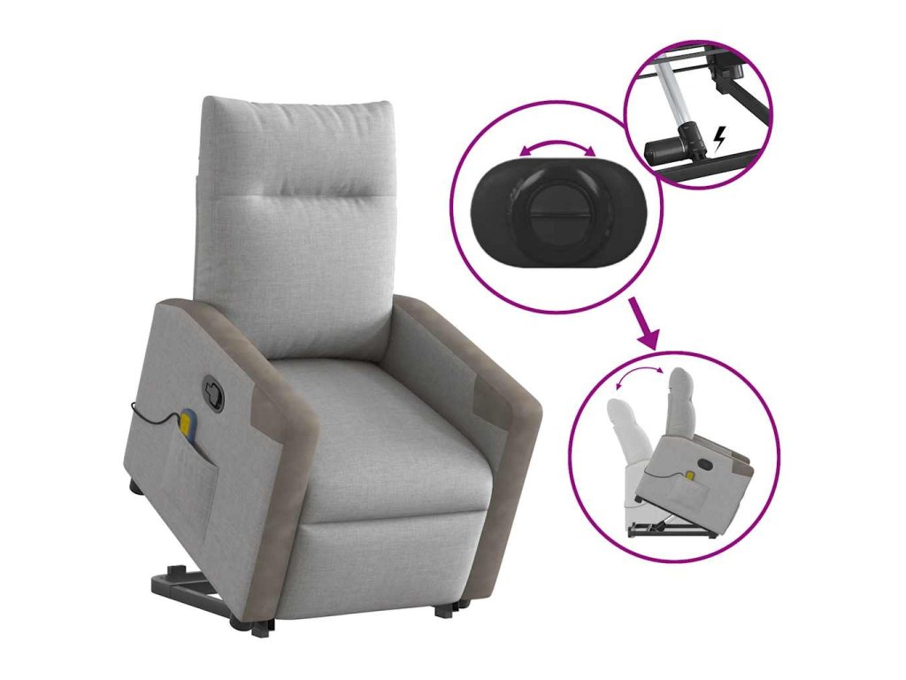 - Funkce sklápění: Toto polohovací křeslo pro seniory je vybaveno elektromotorem pro jeho zvedání. Vzhledem k funkci zvedání, která tlačí celé křeslo nahoru, můžete snadno vstát, aniž byste zatěžovali záda a kolena.