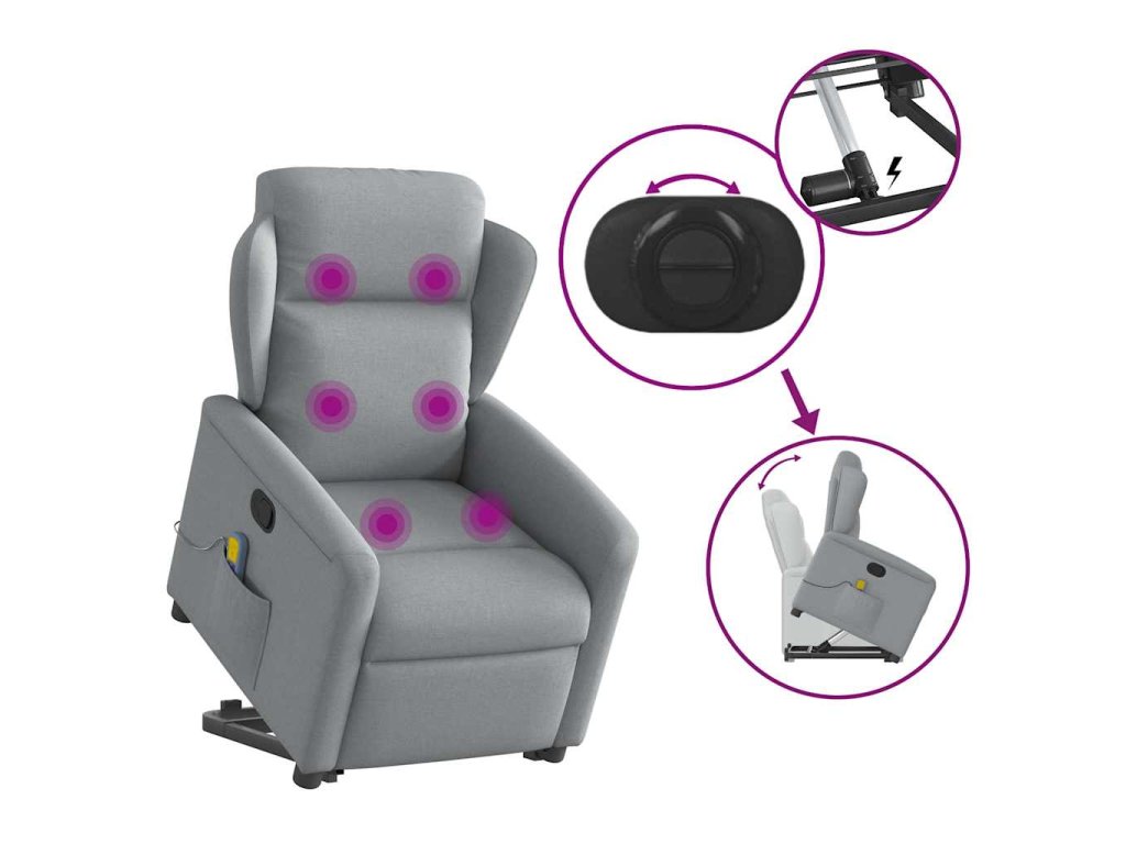 - Funkce sklápění: Toto polohovací křeslo pro seniory je vybaveno elektromotorem pro jeho zvedání. Vzhledem k funkci zvedání, která tlačí celé křeslo nahoru, můžete snadno vstát, aniž byste zatěžovali záda a kolena.