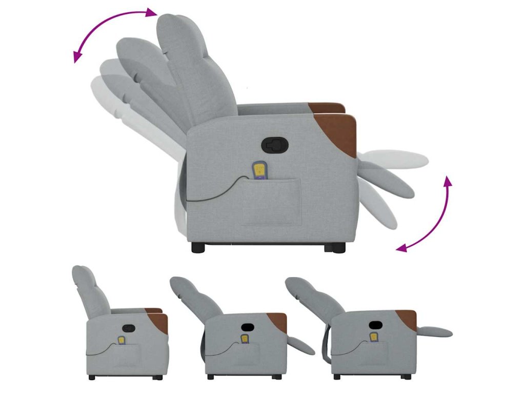 - Funkce sklápění: Toto polohovací křeslo pro seniory je vybaveno elektromotorem pro jeho zvedání. Vzhledem k funkci zvedání, která tlačí celé křeslo nahoru, můžete snadno vstát, aniž byste zatěžovali záda a kolena.