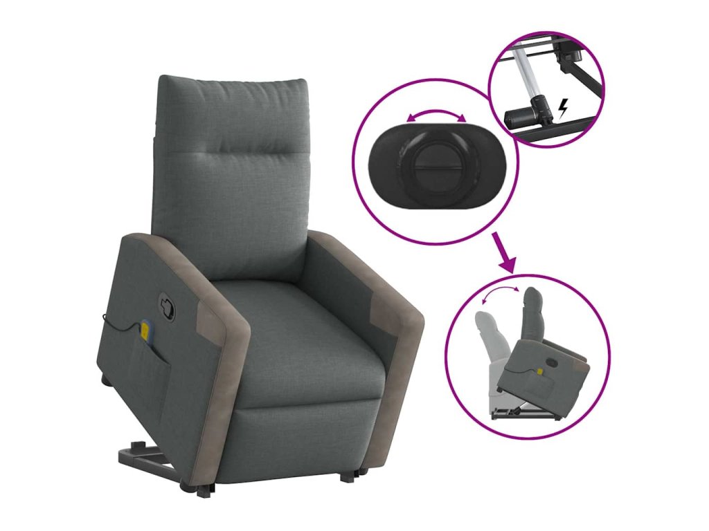 - Funkce sklápění: Toto polohovací křeslo pro seniory je vybaveno elektromotorem pro jeho zvedání. Vzhledem k funkci zvedání, která tlačí celé křeslo nahoru, můžete snadno vstát, aniž byste zatěžovali záda a kolena.