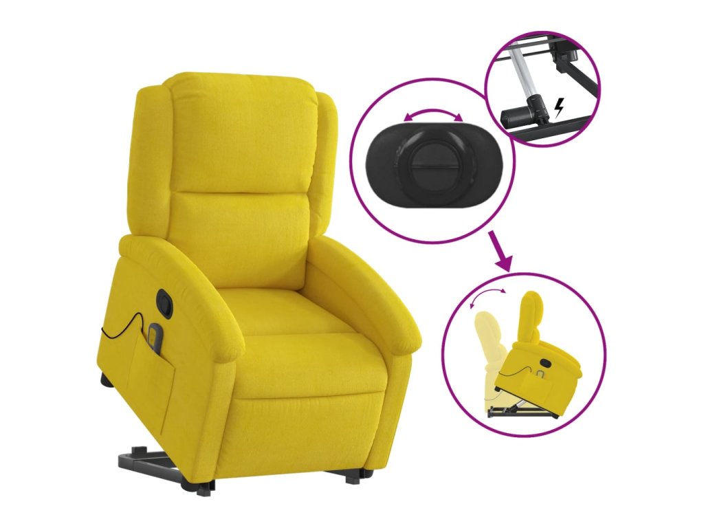 - Funkce sklápění: Toto polohovací křeslo pro seniory je vybaveno elektromotorem pro jeho zvedání. Vzhledem k funkci zvedání, která tlačí celé křeslo nahoru, můžete snadno vstát, aniž byste zatěžovali záda a kolena.