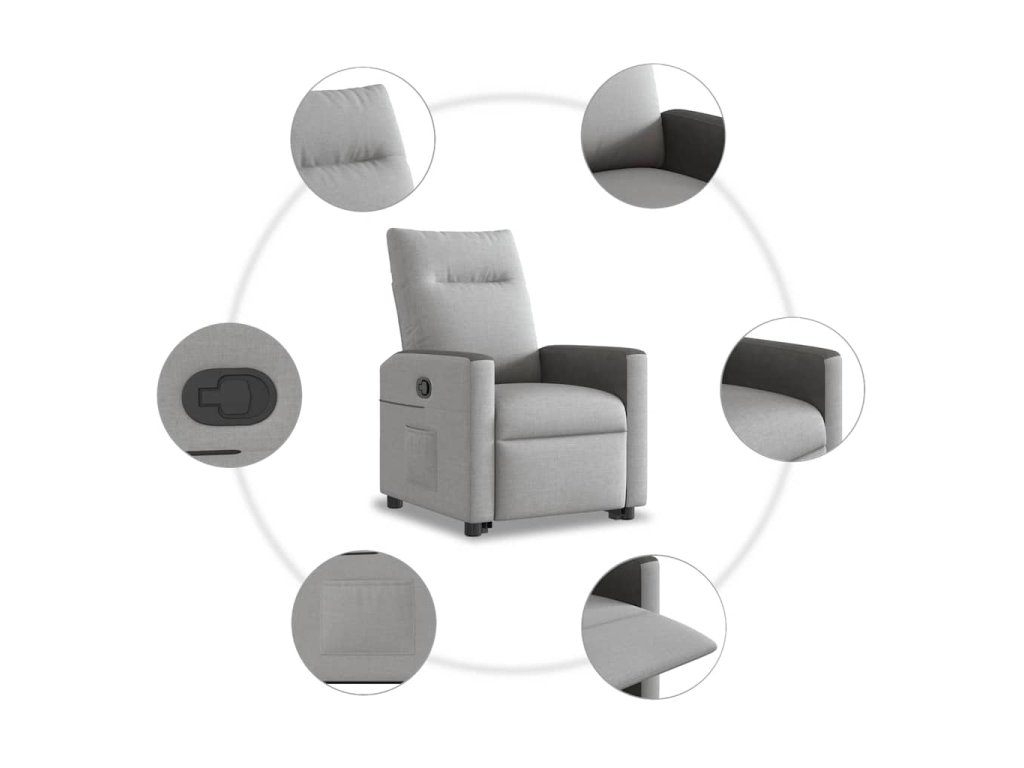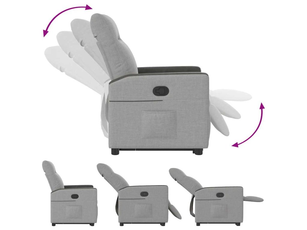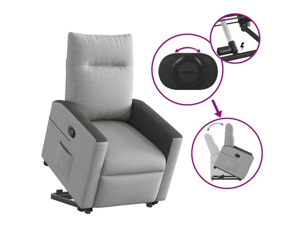 - Funkce sklápění: Toto polohovací křeslo pro seniory je vybaveno elektromotorem pro jeho zvedání. Vzhledem k funkci zvedání, která tlačí celé křeslo nahoru, můžete snadno vstát, aniž byste zatěžovali záda a kolena.