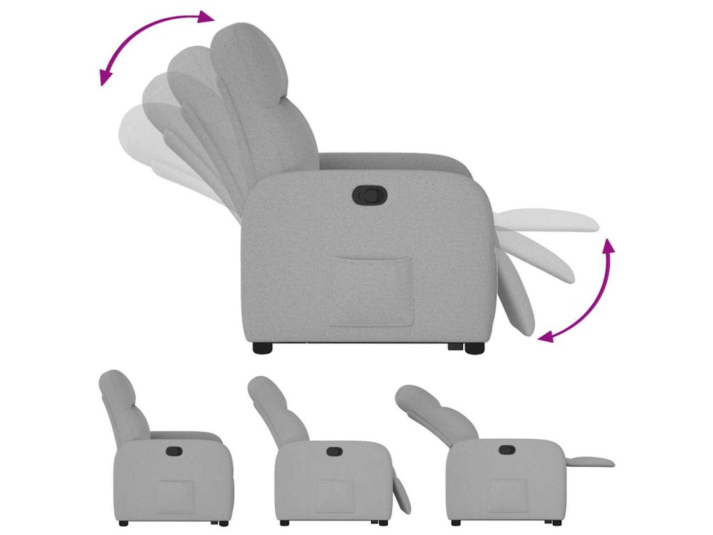 - Funkce ručního sklápění: Toto polohovací křeslo má na pravé straně páčku. Jednoduchým zatažením za páčku můžete ručně nastavit opěrku nohou a opěradlo do libovolné polohy podle svého pohodlí. Tato funkce umožňuje maximální náklon 135 stupňů. Opěradlo se navíc může snadným zatažením za páčku rychle vrátit do původní polohy.
