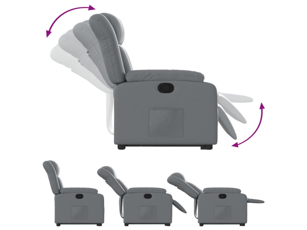 - Funkce ručního sklápění: Toto polohovací křeslo má na pravé straně páčku. Jednoduchým zatažením za páčku můžete ručně nastavit opěrku nohou a opěradlo do libovolné polohy podle svého pohodlí. Tato funkce umožňuje maximální náklon 135 stupňů. Opěradlo se navíc může snadným zatažením za páčku rychle vrátit do původní polohy.