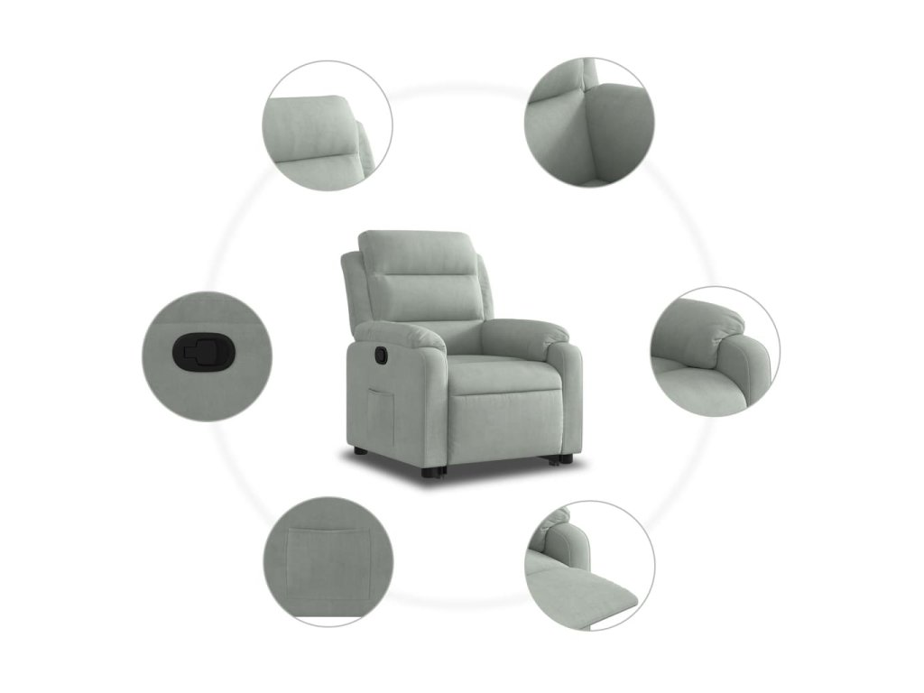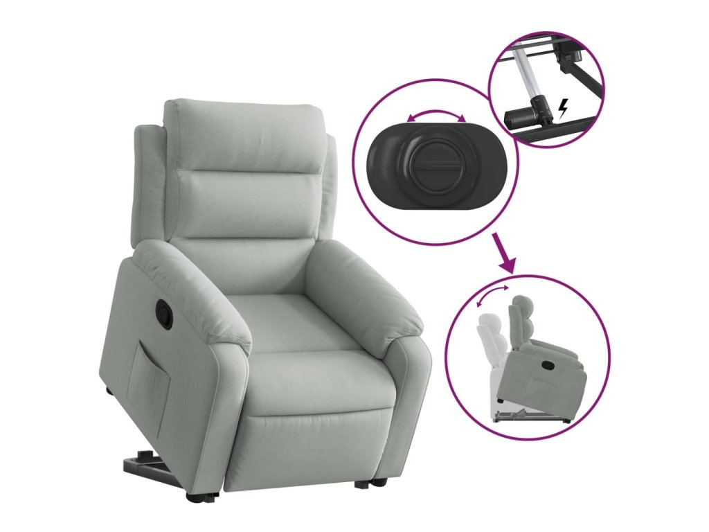 - Funkce sklápění: Toto polohovací křeslo pro seniory je vybaveno elektromotorem pro jeho zvedání. Vzhledem k funkci zvedání, která tlačí celé křeslo nahoru, můžete snadno vstát, aniž byste zatěžovali záda a kolena.