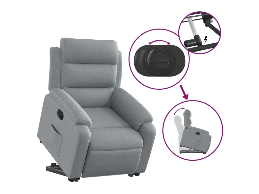 - Funkce sklápění: Toto polohovací křeslo pro seniory je vybaveno elektromotorem pro jeho zvedání. Vzhledem k funkci zvedání, která tlačí celé křeslo nahoru, můžete snadno vstát, aniž byste zatěžovali záda a kolena.
