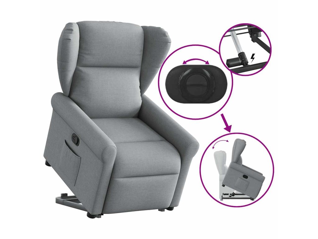 - Funkce sklápění: Toto polohovací křeslo pro seniory je vybaveno elektromotorem pro jeho zvedání. Vzhledem k funkci zvedání, která tlačí celé křeslo nahoru, můžete snadno vstát, aniž byste zatěžovali záda a kolena.