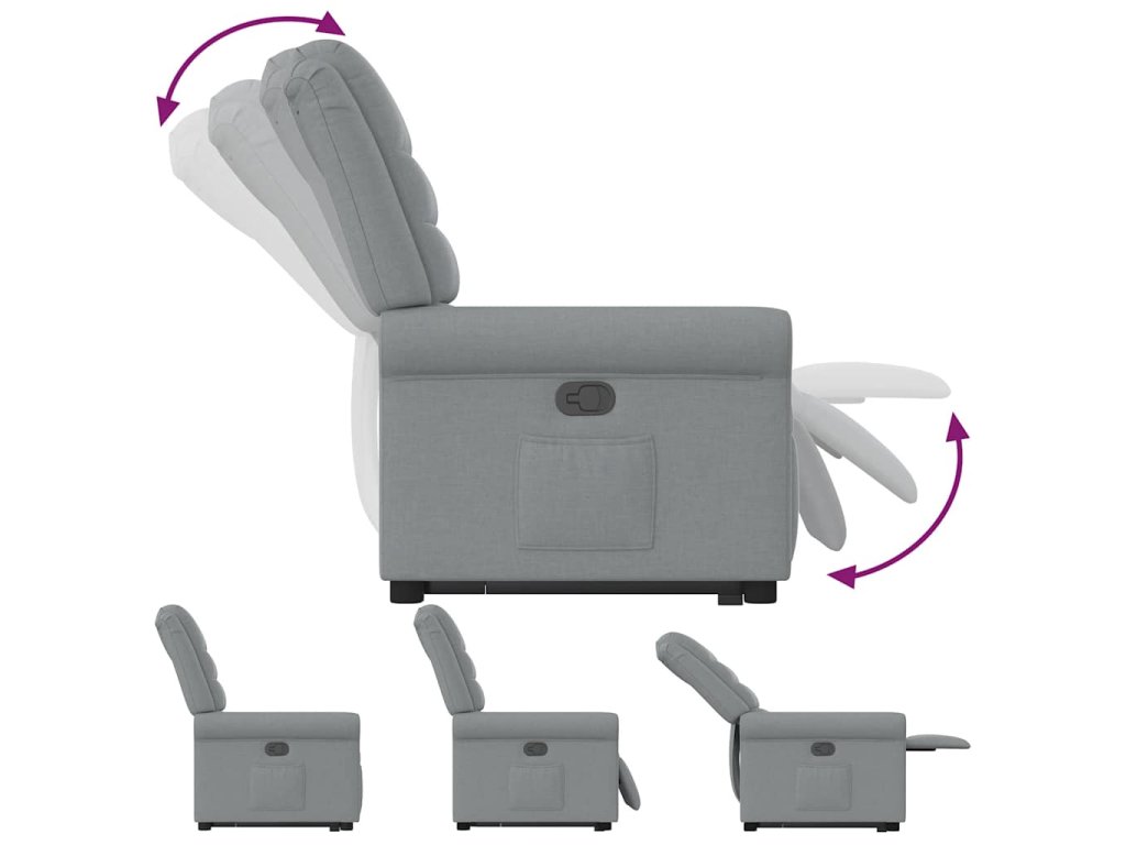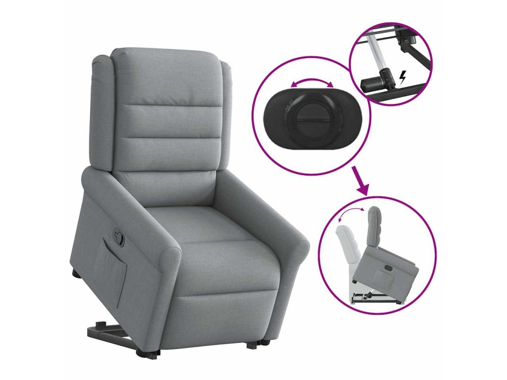 - Funkce sklápění: Toto polohovací křeslo pro seniory je vybaveno elektromotorem pro jeho zvedání. Vzhledem k funkci zvedání, která tlačí celé křeslo nahoru, můžete snadno vstát, aniž byste zatěžovali záda a kolena.