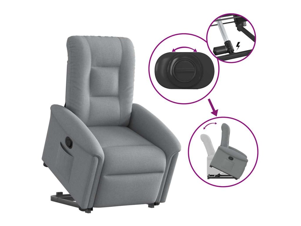 - Funkce sklápění: Toto polohovací křeslo pro seniory je vybaveno elektromotorem pro jeho zvedání. Vzhledem k funkci zvedání, která tlačí celé křeslo nahoru, můžete snadno vstát, aniž byste zatěžovali záda a kolena.