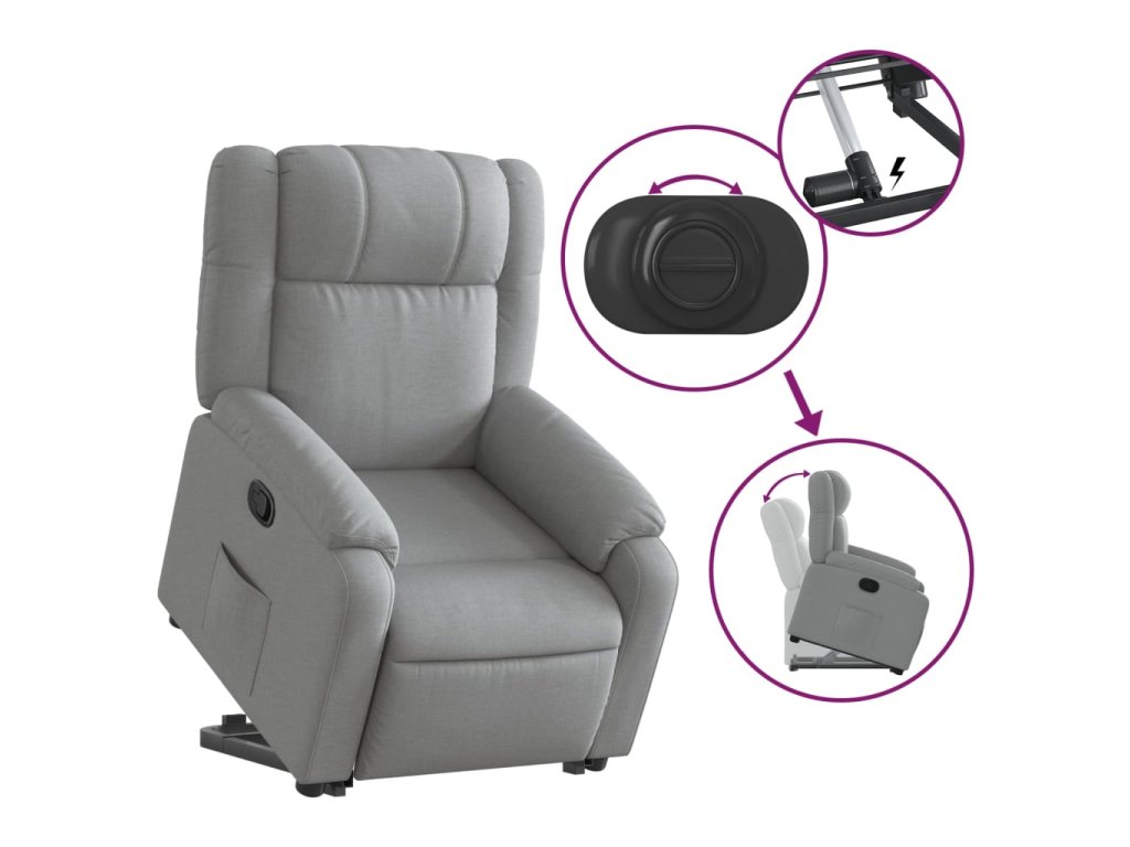 - Funkce sklápění: Toto polohovací křeslo pro seniory je vybaveno elektromotorem pro jeho zvedání. Vzhledem k funkci zvedání, která tlačí celé křeslo nahoru, můžete snadno vstát, aniž byste zatěžovali záda a kolena.
