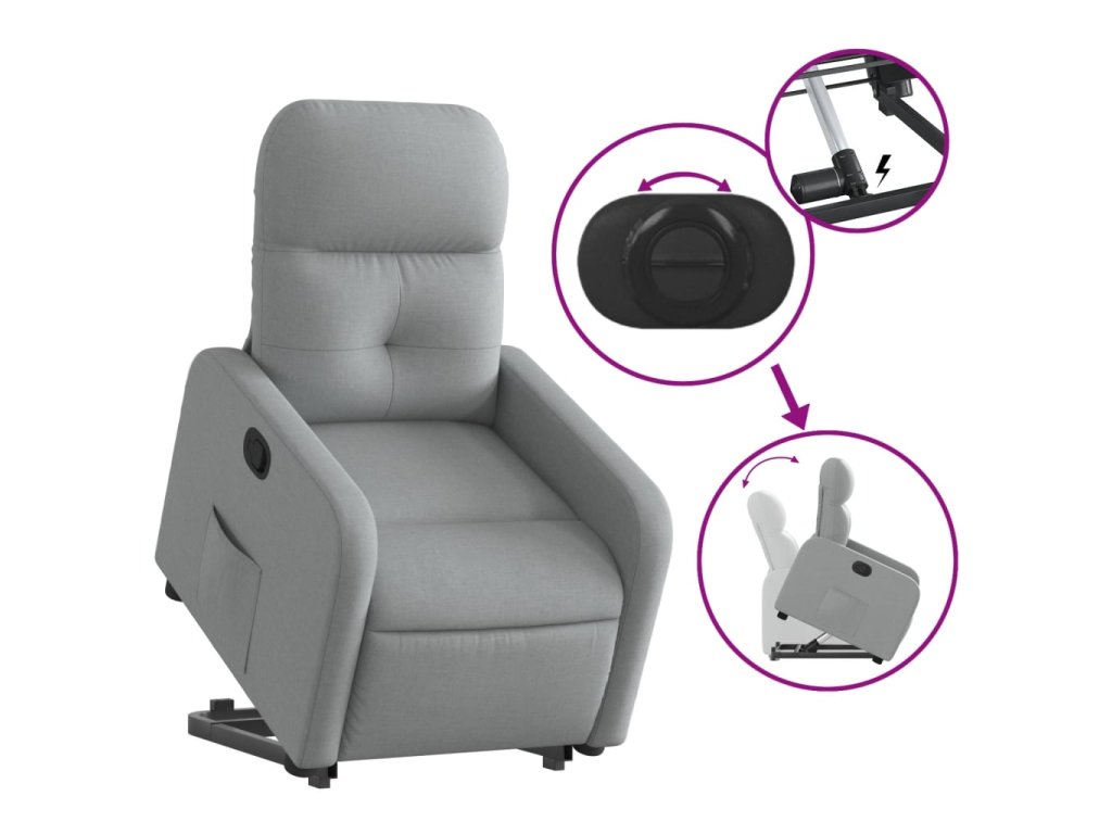 - Funkce sklápění: Toto polohovací křeslo pro seniory je vybaveno elektromotorem pro jeho zvedání. Vzhledem k funkci zvedání, která tlačí celé křeslo nahoru, můžete snadno vstát, aniž byste zatěžovali záda a kolena.
