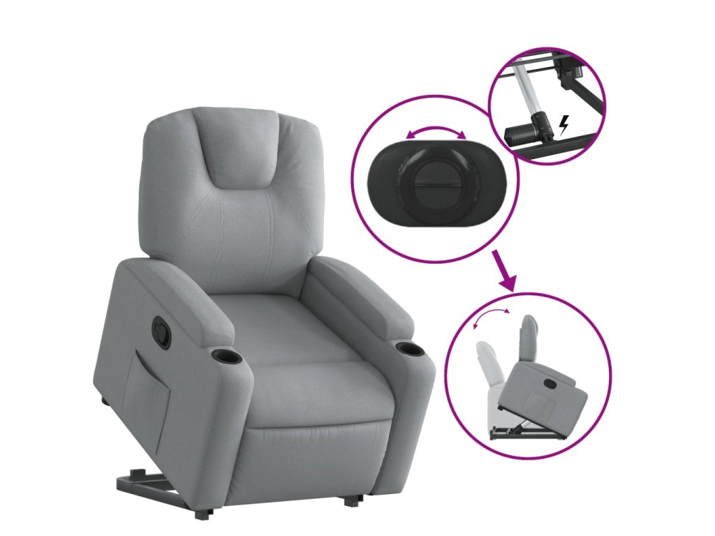 - Funkce sklápění: Toto polohovací křeslo pro seniory je vybaveno elektromotorem pro jeho zvedání. Vzhledem k funkci zvedání, která tlačí celé křeslo nahoru, můžete snadno vstát, aniž byste zatěžovali záda a kolena.
