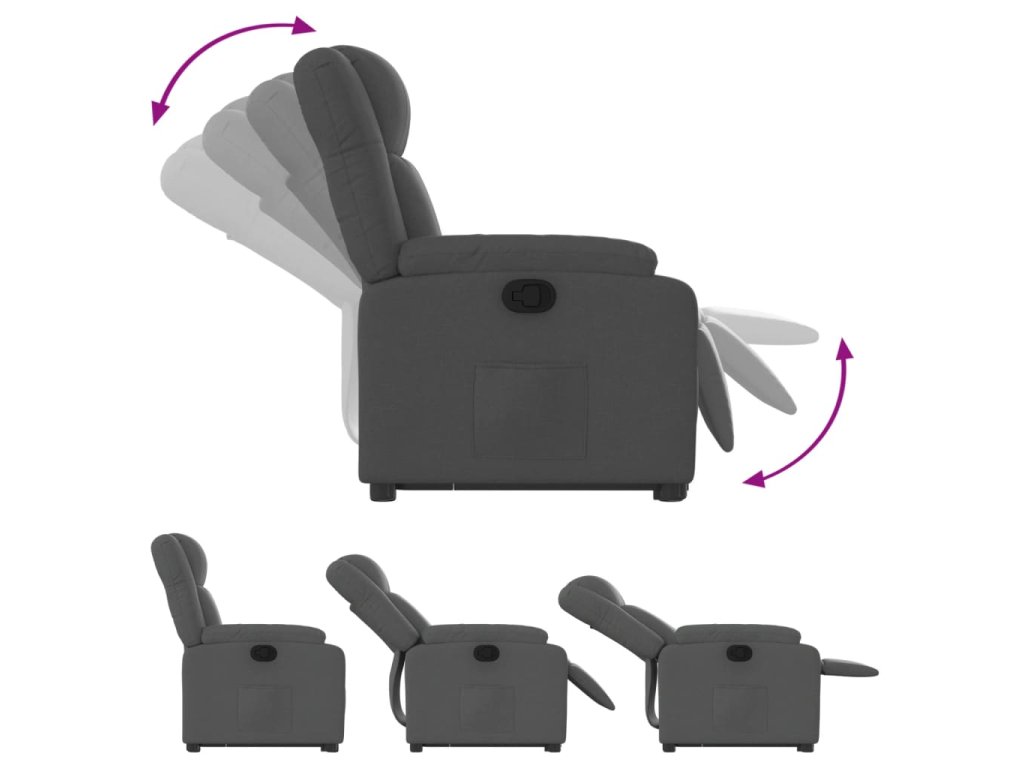 - Funkce ručního sklápění: Toto polohovací křeslo má na pravé straně páčku. Jednoduchým zatažením za páčku můžete ručně nastavit opěrku nohou a opěradlo do libovolné polohy podle svého pohodlí. Tato funkce umožňuje maximální náklon 135 stupňů. Opěradlo se navíc může snadným zatažením za páčku rychle vrátit do původní polohy.