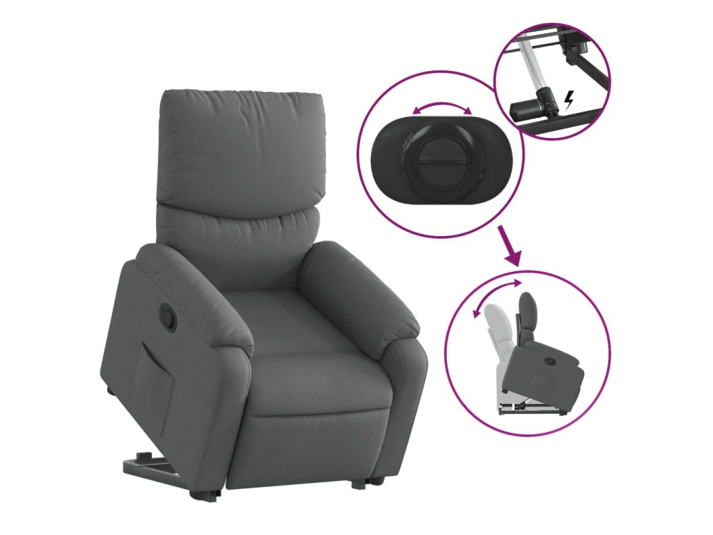 - Funkce sklápění: Toto polohovací křeslo pro seniory je vybaveno elektromotorem pro jeho zvedání. Vzhledem k funkci zvedání, která tlačí celé křeslo nahoru, můžete snadno vstát, aniž byste zatěžovali záda a kolena.