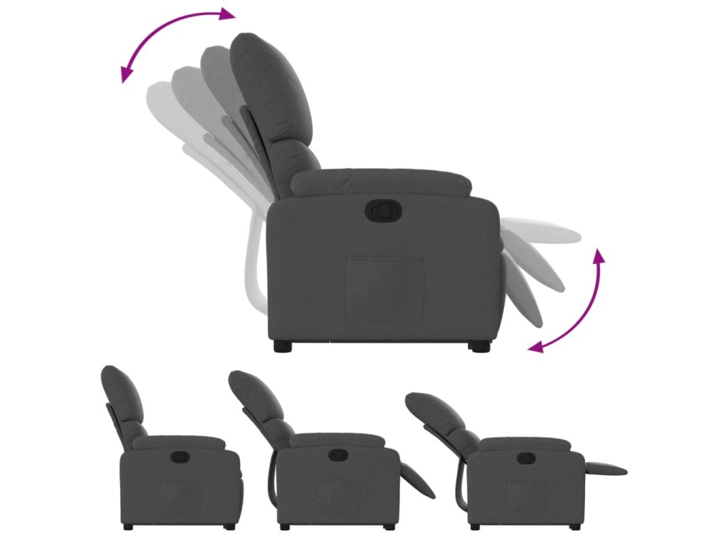 - Funkce ručního sklápění: Toto polohovací křeslo má na pravé straně páčku. Jednoduchým zatažením za páčku můžete ručně nastavit opěrku nohou a opěradlo do libovolné polohy podle svého pohodlí. Tato funkce umožňuje maximální náklon 135 stupňů. Opěradlo se navíc může snadným zatažením za páčku rychle vrátit do původní polohy.