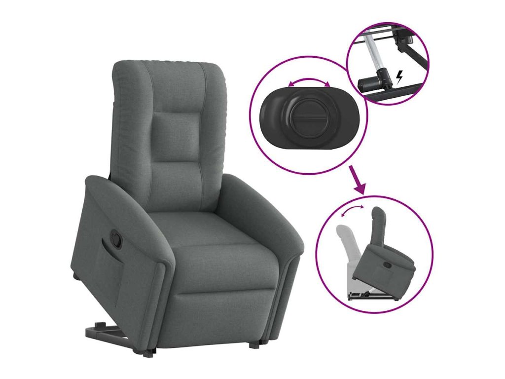- Funkce sklápění: Toto polohovací křeslo pro seniory je vybaveno elektromotorem pro jeho zvedání. Vzhledem k funkci zvedání, která tlačí celé křeslo nahoru, můžete snadno vstát, aniž byste zatěžovali záda a kolena.